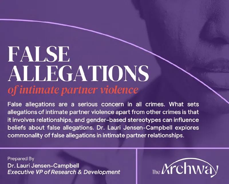 False allegations are a serious concern in all crimes. What sets allegations of intimate partner violence apart from other crimes is that it involves relationships, and gender-based stereotypes can influence beliefs about false allegations. Dr. Lauri Jensen-Campbell explores commonality of false allegations in intimate partner relationships.